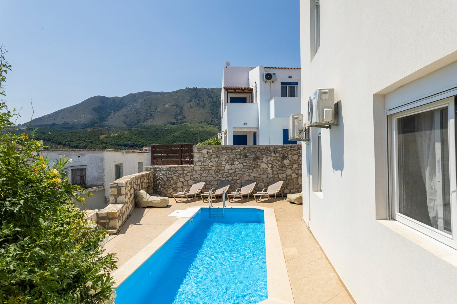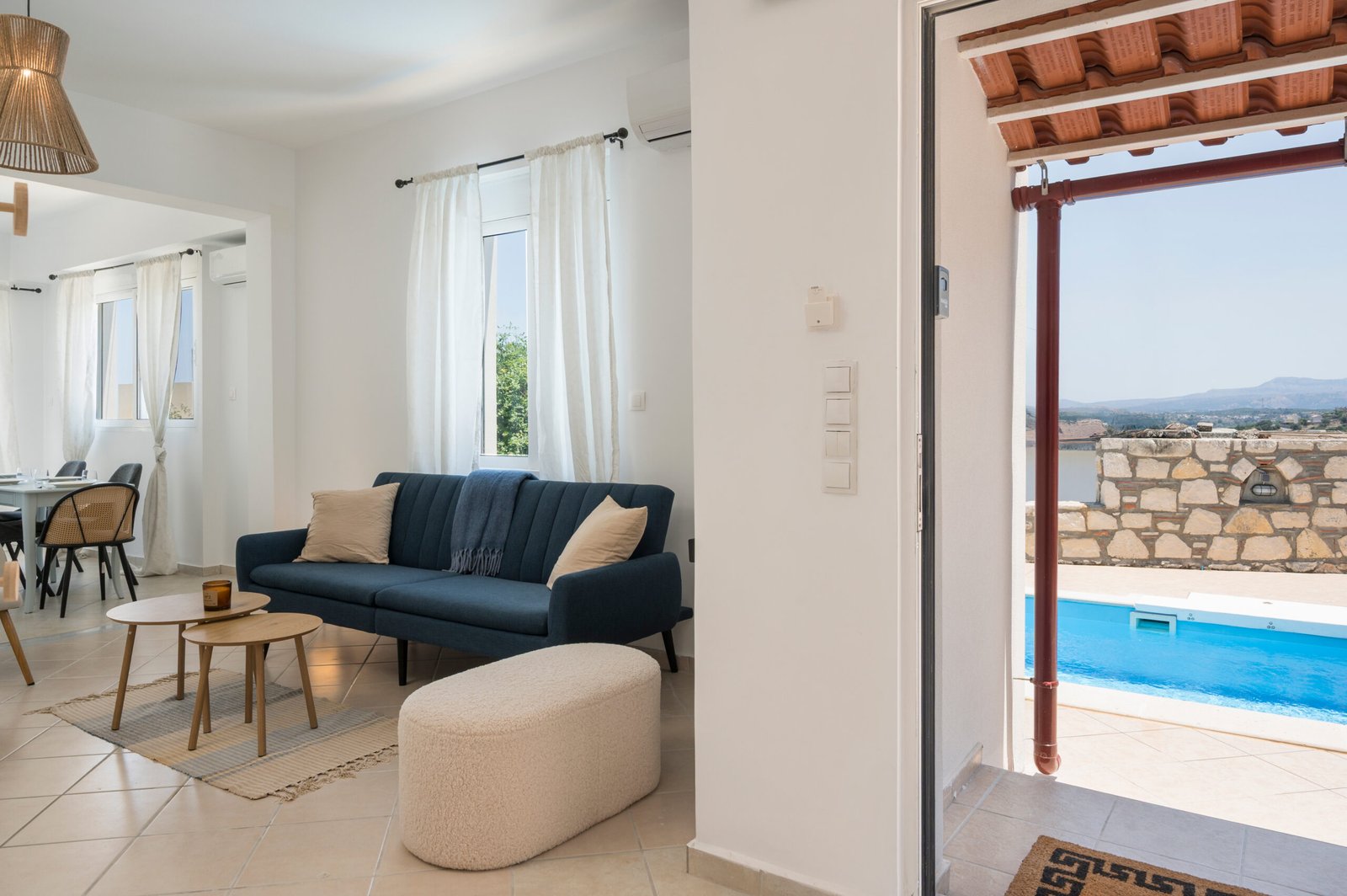 Tucked away in the peaceful village of Kournas, Villa Views blends calm luxury with sweeping sea and mountain views. Designed with natural materials and sunlight in mind, this elegant three-bedroom retreat features a private pool, open living spaces, and soothing interiors that reflect Crete’s effortless beauty. Perfect for couples, families, or friends seeking authentic relaxation and quiet connection with nature.